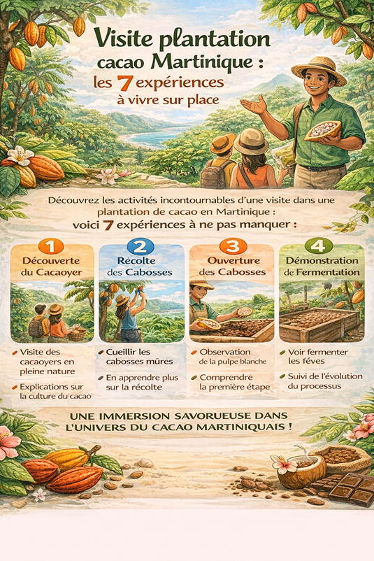 Profitez d’une visite plantation cacao Martinique, explorez ateliers, dégustations, histoire locale, conseils pratiques et avis pour organiser votre sortie gourmande en famille.